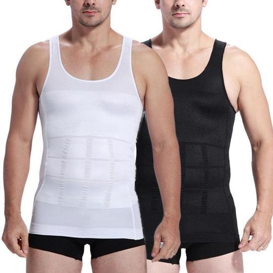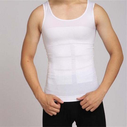 Made of nylon and spandex, the men's body sculpting vest comes in black or white and looks like a totally normal T-shirt / camis. Nothing more than holding your breath for the photos when you want to meet someone special!
