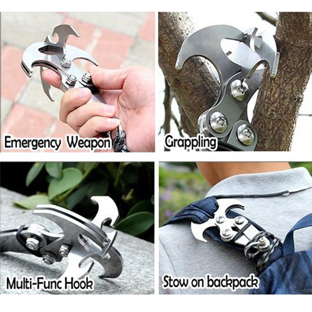 This is a multi-purpose gravity hook, made of high-quality stainless steel. With claws, it can be used for climbing trees, grappling falling objects, wilderness survival training and so on. With a cool bat-like gear tie, it can be used for emergency connect. With two rubber O-rings, they can tie the gravity hook tightly for easily carrying and protecting you from hurting. I am sure that those outdoor enthusiasts will like it.