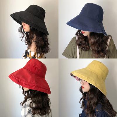 Sun hat summer female solid color big hat Japanese basin hat tide cloth hat sun hat sunscreen folding